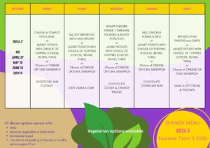 Menus are repeated every three weeks during the term, but MAY change with little or no notice, depending on produce supply.
