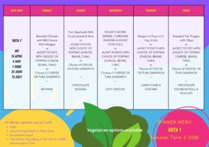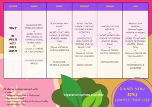 The menu for the full half term will be emailed out by Sway. If you do not receive this, please check your “junk” items. Please complete your child’s lunch choices on Arbor by no later than 12:30 the day before they are due to be taken.